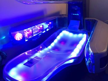 Relax and rejuvenate the mind and body in our Hydro Massage bed! This patented massage bed uses swirling heated jets that travel up and down the body to transport users into a total world of relaxation!